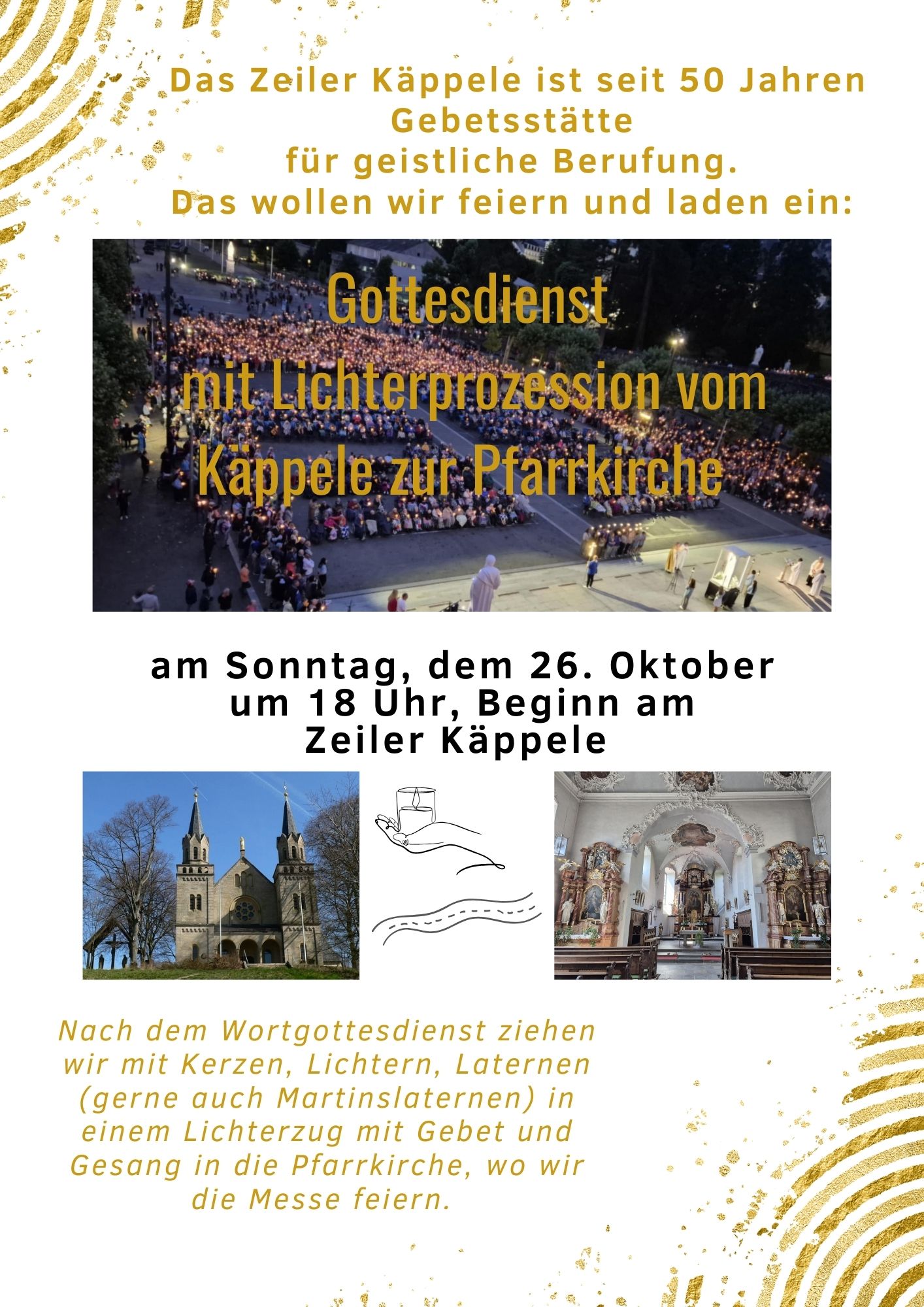 Beginn mit einem Wortgottesdienst am Käppele, anschließend Lichterprozession zur Kirche