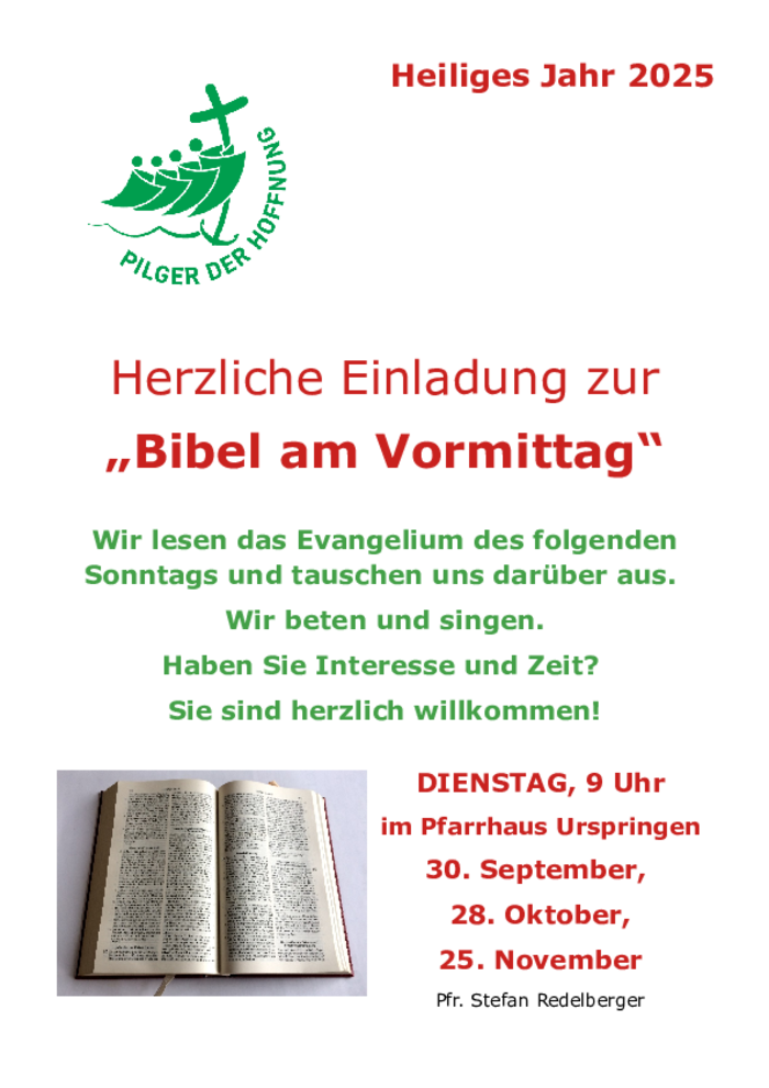 Wir lesen das Evangelium des folgenden Sonntags und tauschen uns darüber aus.