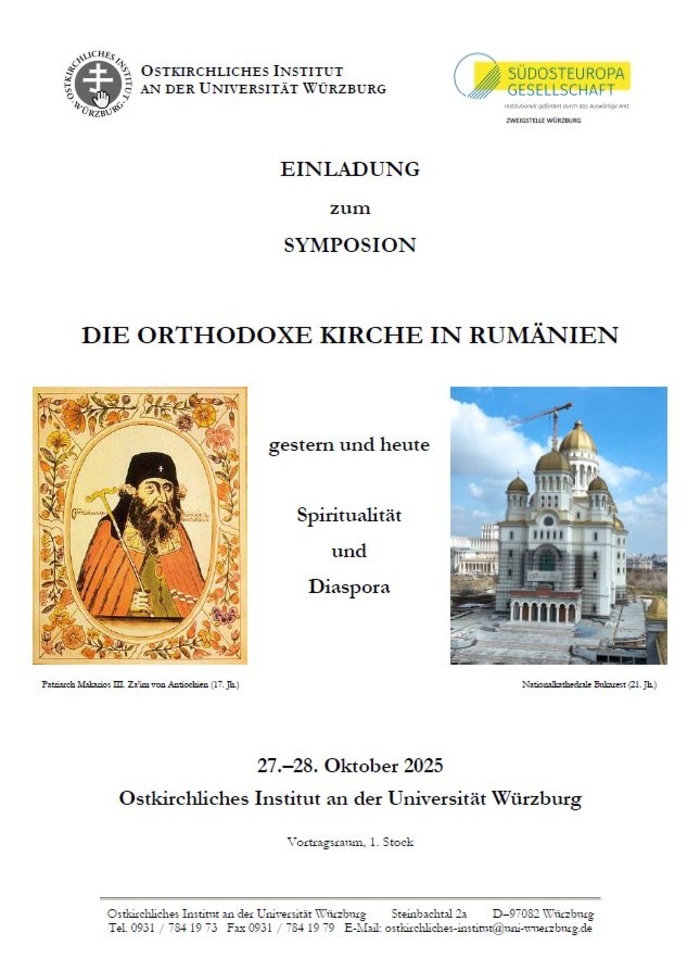 Wir freuen uns, daß wir in diesem Jahr wieder zu einem Symposion am 27.-28. Oktober 2025 im Ostkirchlichen Institut Würzburg einladen zu dürfen, das zusammen mit der Südosteuropa-Gesellschaft an der Zweigstelle Würzburg veranstaltet wird: